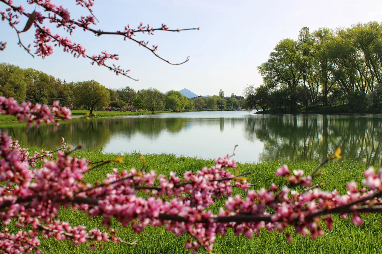 Уникальное живописное место города-курорта Ессентуки на берегу городского озера рядом со сквером